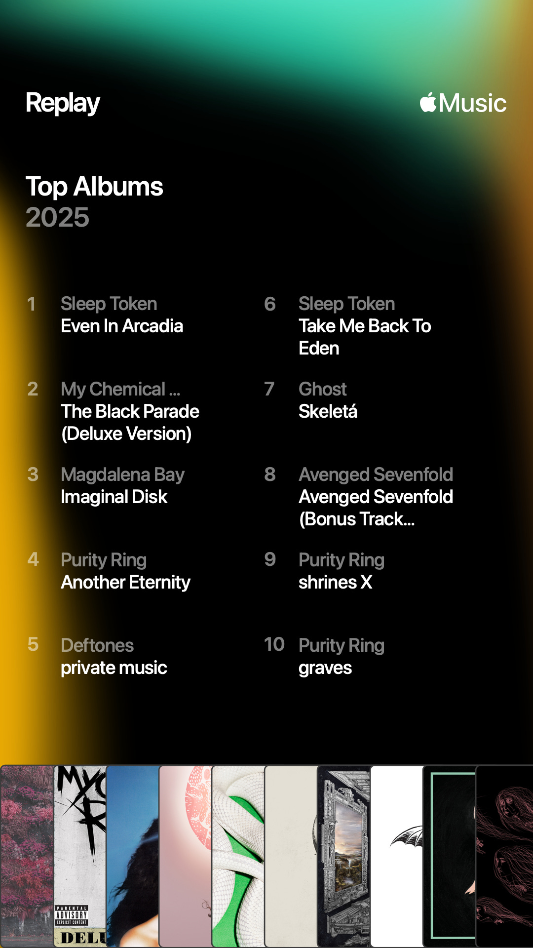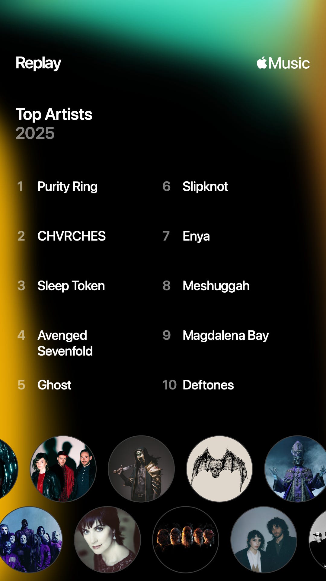 The new Purity Ring, Ghost, and Sleep Token records really have a hold on me.